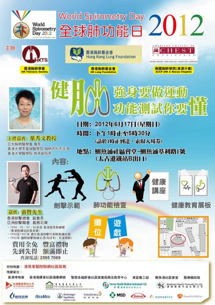 The HKTS, ACCP (HK & Macau Chapter) and HKLF have jointly organized our local event for the “World Spirometry Day 2012” with details as below: “世界肺功能日2012”