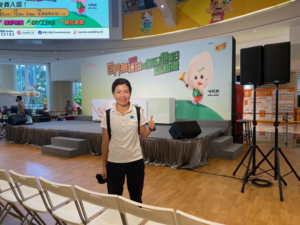COSH has organized the publicity event under the theme of “Get Set, Go! Towards our Tobacco-free Future” named “Smoke-free Sportswear Day Kick-off Ceremony cum Carnival 2023” at Atrium L1, D•PARK Tsuen Wan on 28 May 2023. Dr Macy Lui, on behalf of HKTS, had attended the Kick-off Ceremony that day.