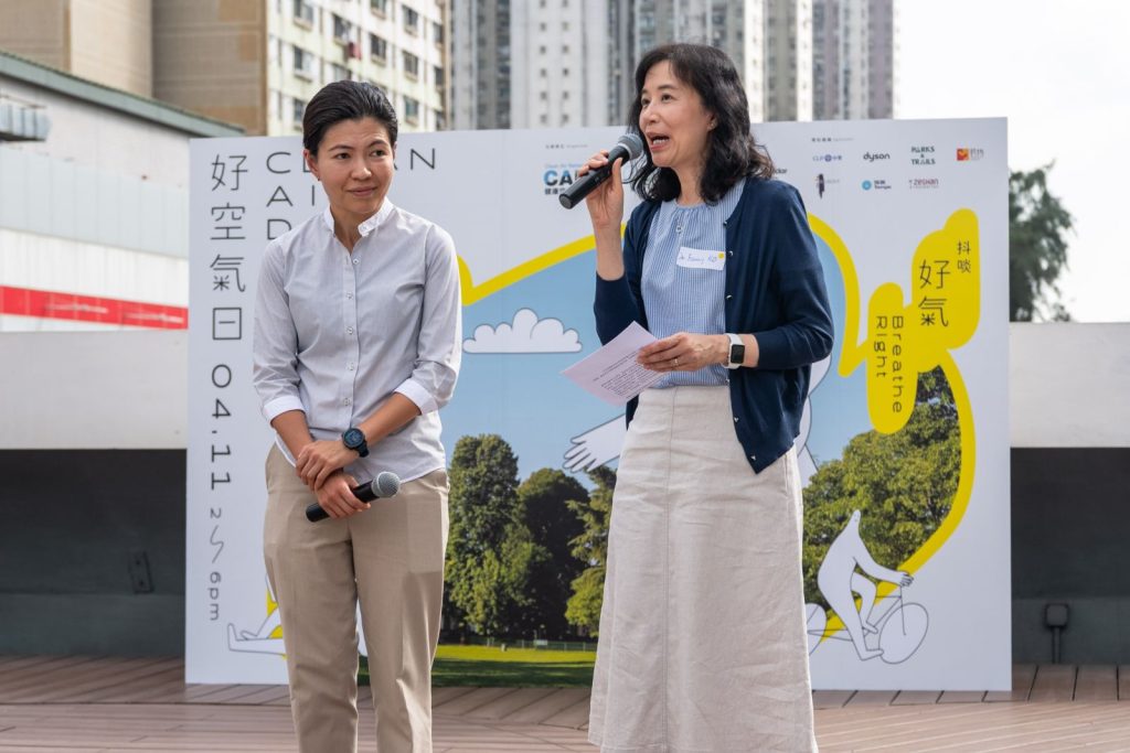 On November 4th, 2023 (Saturday), Dr. Fanny Ko represented HKLF and Dr. Macy Lui represented HKTS as guest speakers for the Clean Air Day 2023 officiating ceremony organized by Clean Air Network (CAN). The ceremony was held at the Atrium, Rooftop of H.A.N.D.S Shopping Centre, located at 2A Heung Sze Wui Road, Tuen Mun.