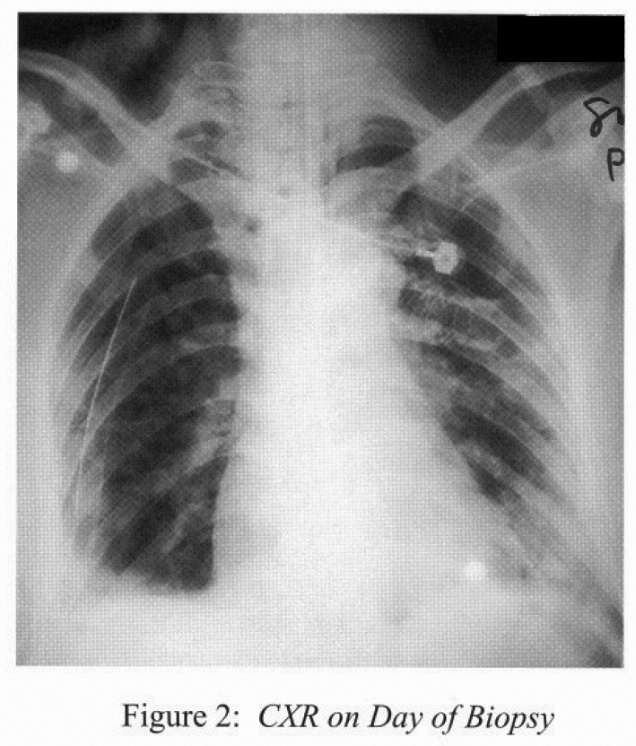 Chest radiograph on the day of biopsy was shown (Figure 2).