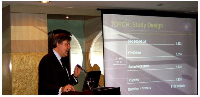 Professor Neil Barnes, Consultant Respiratory Physician from the London Chest Hospital of the United Kingdom presented the latest research findings on COPD. He emphasized the importance of inflammation in the pathogenesis of the disease and the anti-inflammatory effects of inhaled corticosteroid (ICS) and ICS/long acting beta-agonist (LABA) combination. He went on to present preliminary results of the TORCH (Towards a Revolution in COPD Health) study which examines the effect of salmeterol/fluticasone on the mortality of COPD patients.