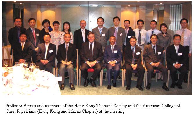 A Scientific Roundtable Meeting on new evidence in chronic obstructive pulmonary disease (COPD) was held on June 9, 2006 at the Renaissance Harbour View Hotel in Hong Kong. Twenty-five Council and Exco members of the Hong Kong Thoracic Society and the American College of Chest Physicians (Hong Kong and Macau Chapter) participated in this meeting.