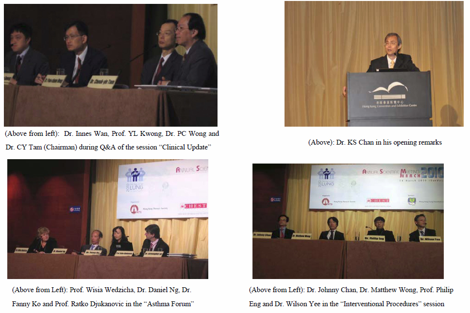 Please be informed that the Annual Scientific Meeting 2010 organised by the Hong Kong Thoracic Society and the American College of Chest Physicians (HK and Macau Chapter) will be held on 14 March at the Hong Kong Convention and Exhibition Centre. It will be a full day meeting on Sunday.