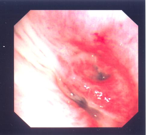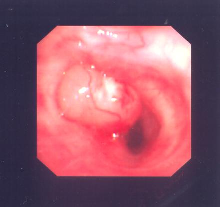 Fig.5 (Above) Patient 2: Flexible bronchoscopy showed severe stenosis