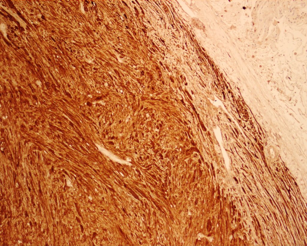Fig. 4 (Above) Strong diffuse staining for S100